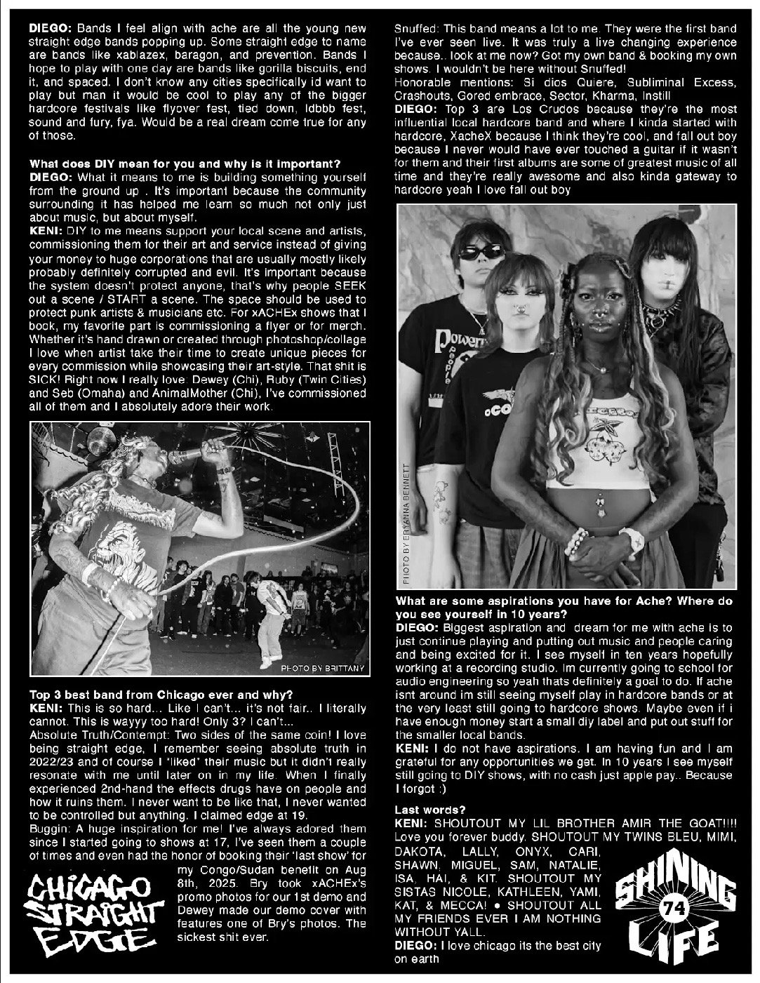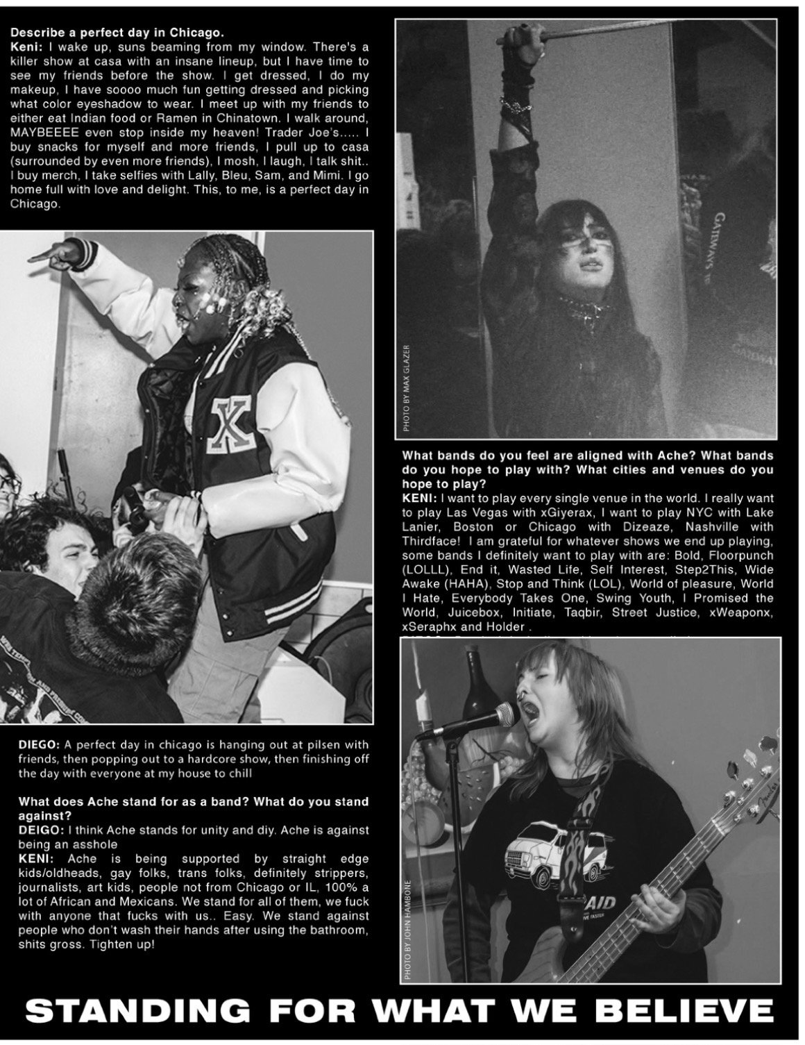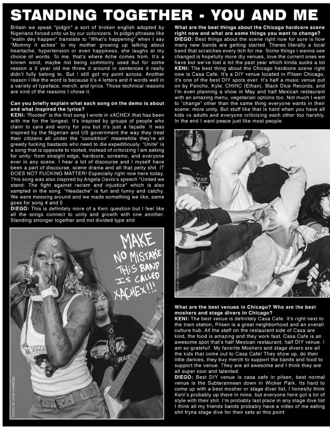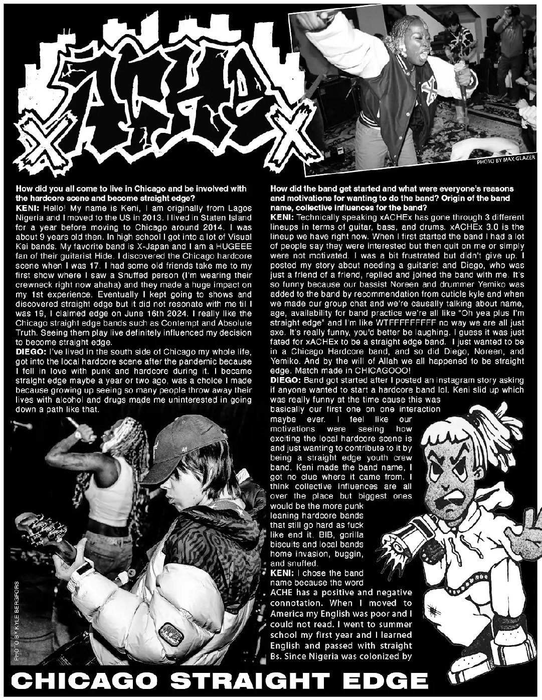 An interview with Keni and Diego of xACHEx with artwork from Dewey. Chicago Straight Edge